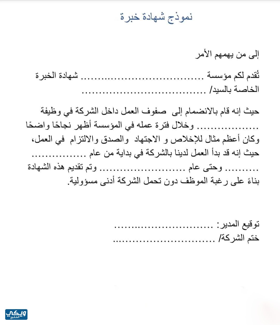 (……..) تقدم لكم الشركة شهادة خبرة للسيد/………….
